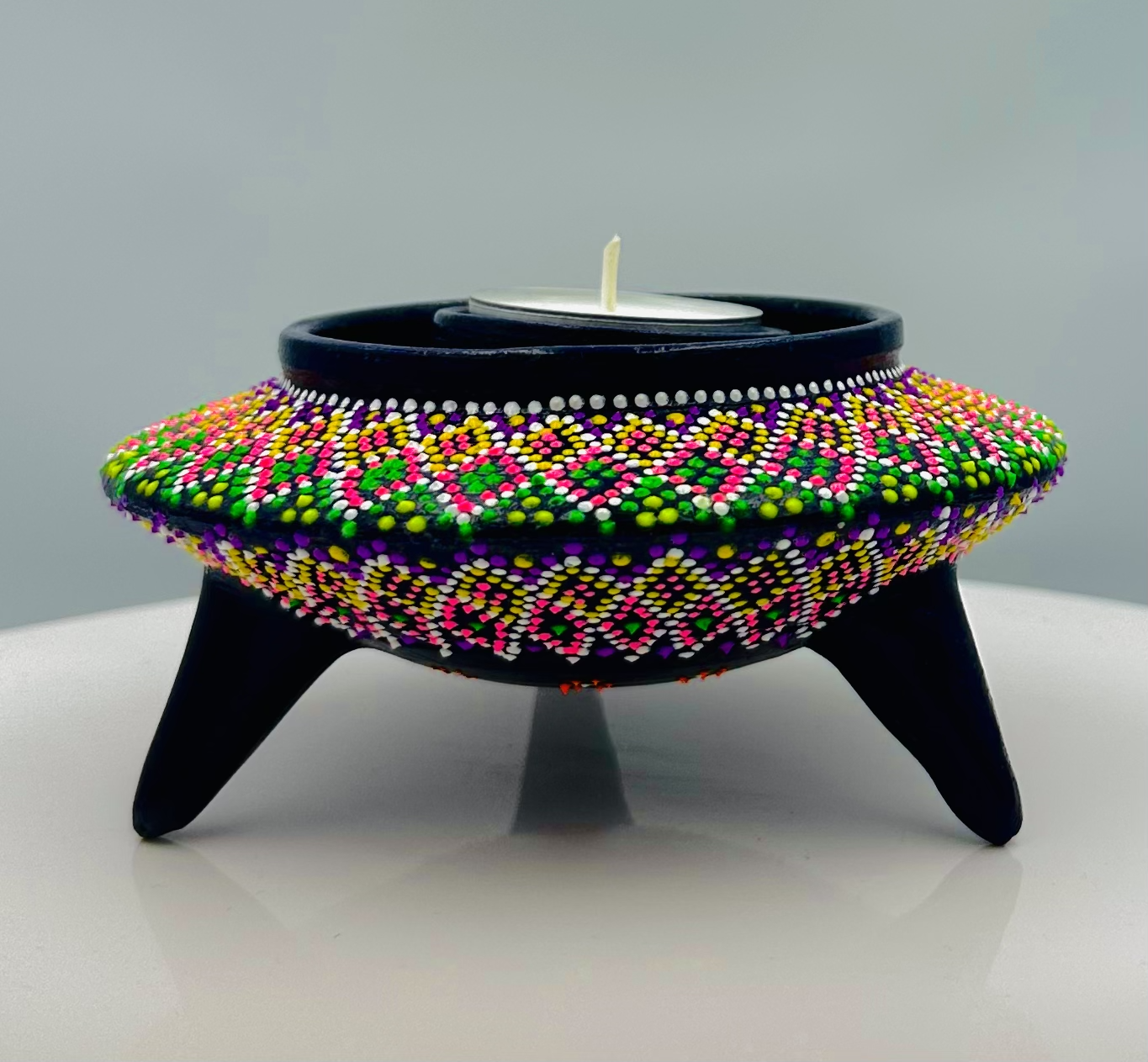 Illuminate your space with the timeless beauty of handcrafted tea candle holders from Aqda Village, nestled in the heart of Yazd City, Iran. Each holder is a masterpiece, meticulously crafted by skilled artisans using traditional techniques passed down through generations. Made from the finest materials, these holders feature intricate designs and vibrant colors that reflect the rich cultural heritage of the region.